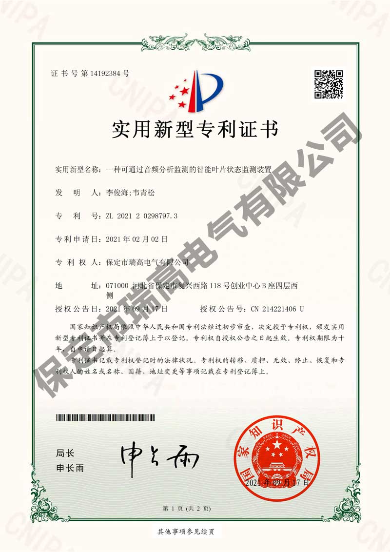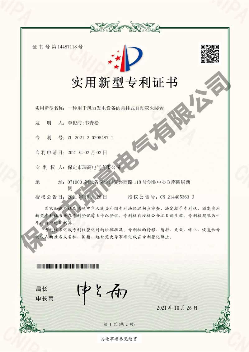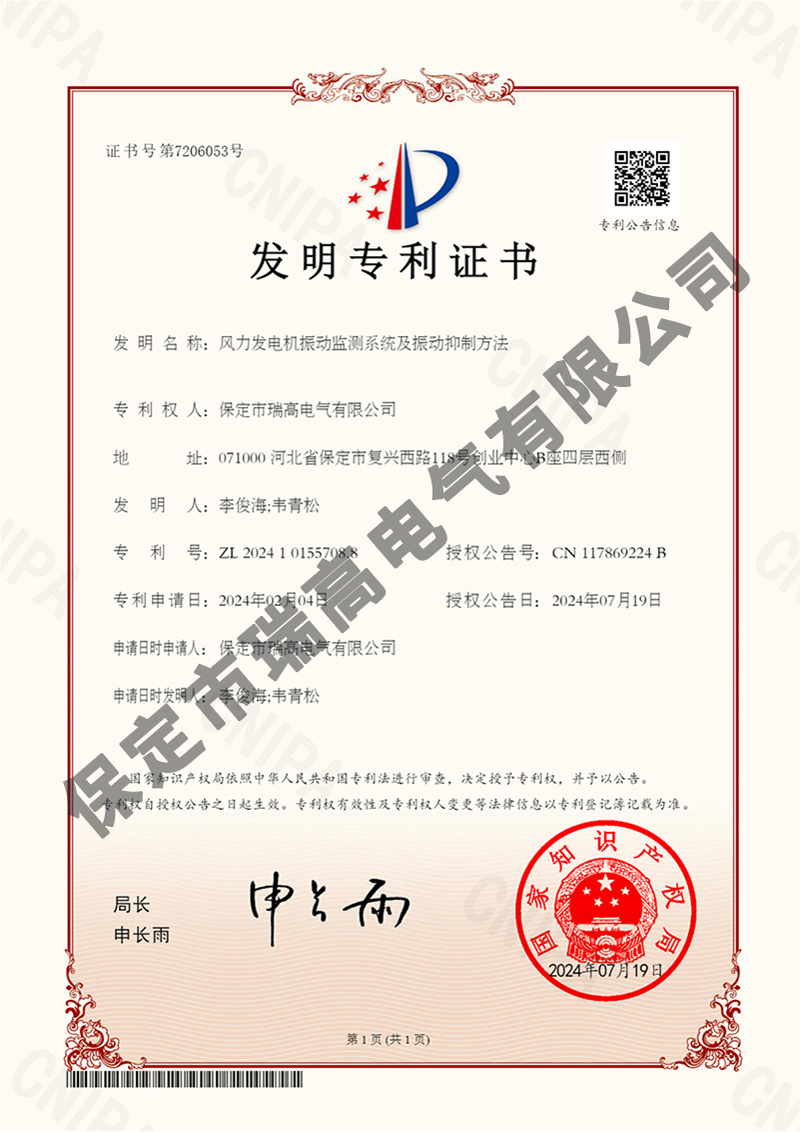 風(fēng)力發(fā)電機(jī)振動(dòng)監(jiān)測(cè)系統(tǒng)及振動(dòng)抑制方法風(fēng)力發(fā)電機(jī)振動(dòng)監(jiān)測(cè)系統(tǒng)及振動(dòng)抑制方法電流檢測(cè)系統(tǒng)電流檢測(cè)系統(tǒng)干粉滅火設(shè)備干粉滅火設(shè)備葉片狀態(tài)監(jiān)測(cè)裝置葉片狀態(tài)監(jiān)測(cè)裝置懸掛式自動(dòng)滅火裝置懸掛式自動(dòng)滅火裝置接地保護(hù)裝置接地保護(hù)裝置箱變測(cè)控裝置箱變測(cè)控裝置環(huán)境管理體系認(rèn)證證書環(huán)境管理體系認(rèn)證證書
